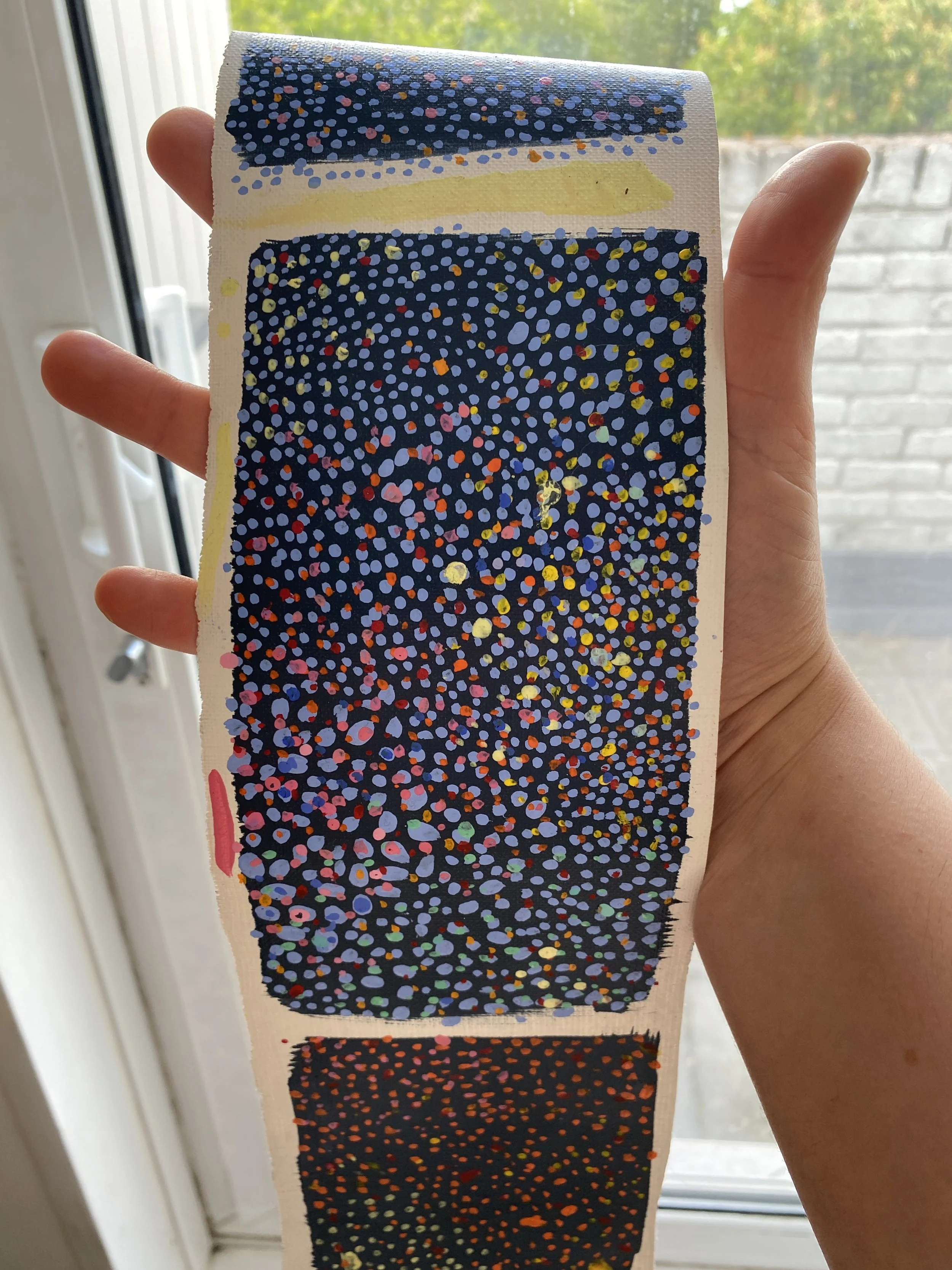 An evolving identity grounded in light, frequency, and perception—translating what I see and sense into delicate formations, expressed through micro-dots as visual echoes of these elements.